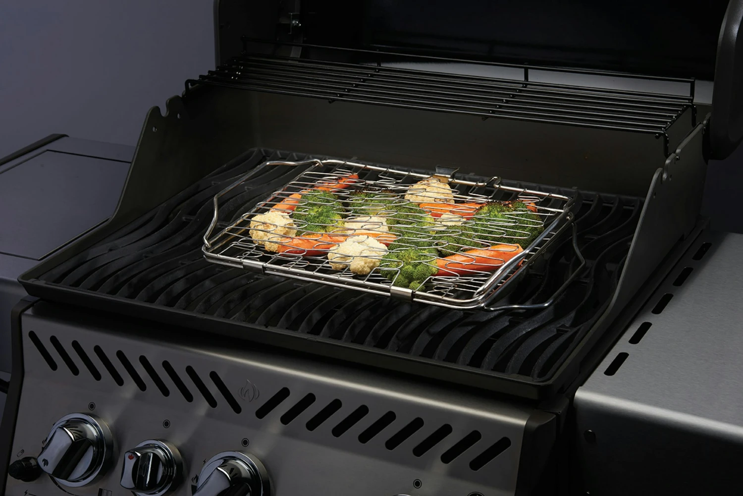 Der klappbare Fisch- und Gemüsehalter von NAPOLEON ist besonders für empfindliches Grillgut geeignet. SpannenSie einfach den Fisch oder das Gemüse inden Halter ein und legen Sie diesen auf den Grill. Das Grillgut kann dann später komplett mit Halter gewendet werden. Der Edelstahl-Halter bietet sich vor allem bei Grillgut an, dass normalerweise Probleme beim Drehen verursacht (zerfällt oder zerbricht).