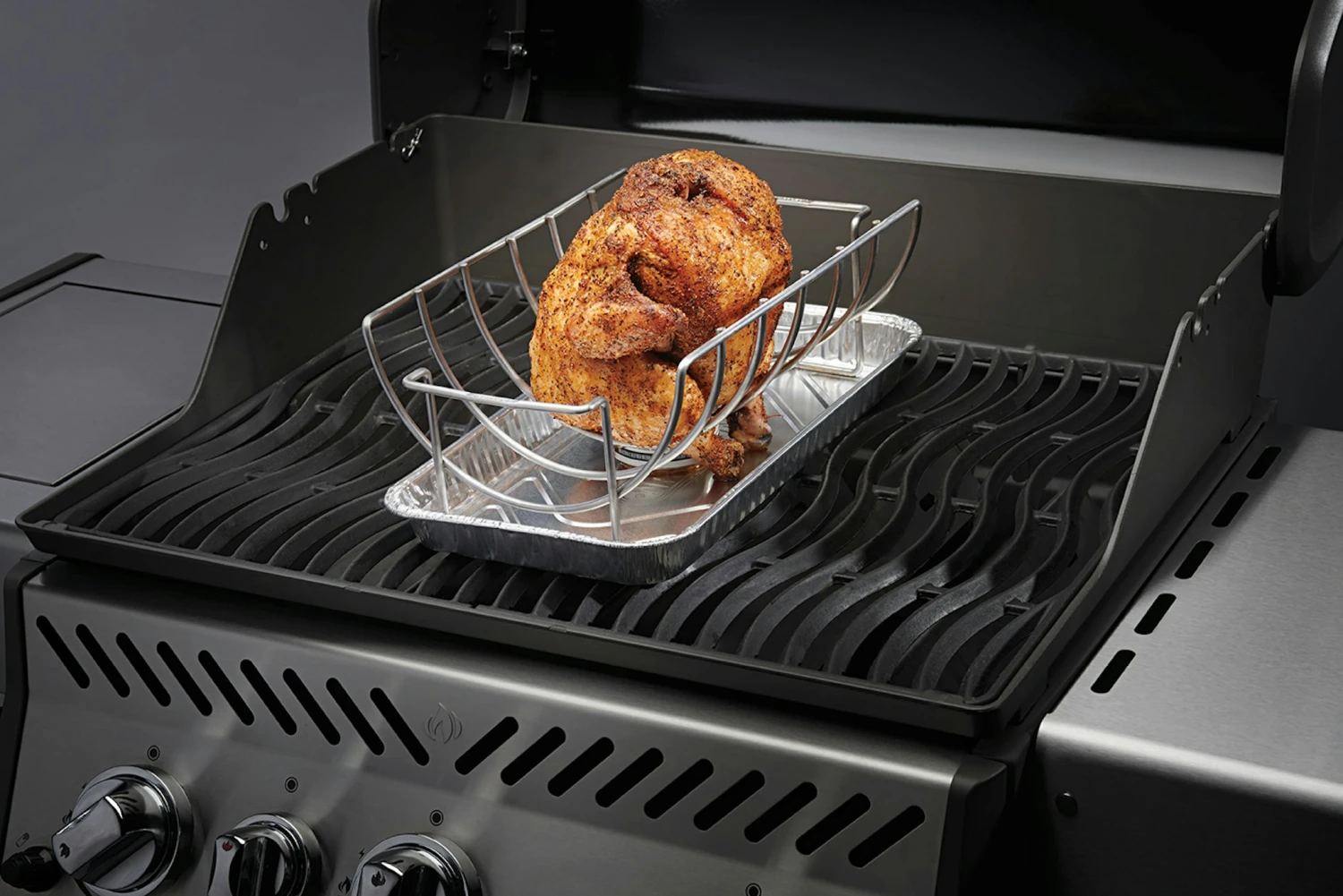 Grillen Sie saftige Spare-Ribs , riesige Bratenstücke und Bierdosenhähnchen mit dem NAPOLEON 3-in-1 Halter aus hochwertigem Edelstahl. Praktischerweise ist der 3-in-1 Halter mit seitlichen Griffen ausgestattet. So können Sie Ihre Grillspezialitäten sicher und direkt auf dem Halter an den Tisch bringen. Der Halter ist spülmaschinenfest. Maße: 5 x 20 x 13 cm